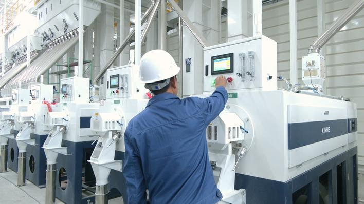 更为先进的是“江汉大米”数智化云控系统,工业摄像头以毫秒级精度捕捉瑕疵,五道色选机精准剔除残次品,不合格品剔除率达到99.9%。